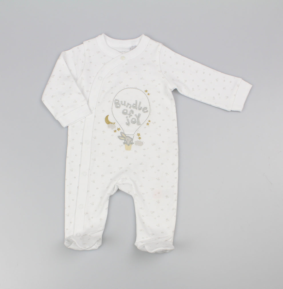 Beautifully embroidered with a bunny in a hot air balloon and “Bundle of Joy” wording, making it a truly special keepsake piece. -